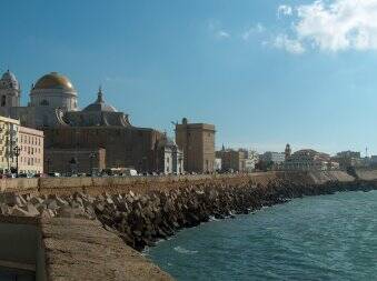 Na de gebruikelijke boterham rijden we naar Cádiz. Cádiz is een havenstad in Zuidwest-Spanje. Cádiz is gelegen in Andalusië aan de Golf van Cádiz, en telt 131.813 inwoners (2005). Cádiz ligt op de punt van een smalle landtong en wordt aan drie zijden door water omgeven; een 1400 m lange verkeersbrug verbindt de stad via de kortste weg met de vasteland zijde. Ook is er een verbinding met San Fernando in het zuiden. De belangrijkste gebouwen zijn de neoclassicistische kathedraal en de Filippo-Nerikerk met werken van Murillo. Onderweg naar Cádiz staan ontzettend veel windmolens, nog meer dan bij Tarifa. Ook zien we weer ooievaars. In Cádiz zie je aan de versieringen nog dat daar uitbundig carnaval is gevierd. Ook schijnt de zon, maar staat er weer veel wind. 's Avonds lopen we Tarifa nog eens in en merken dat er nu veel meer winkeltjes open zijn dan overdag.