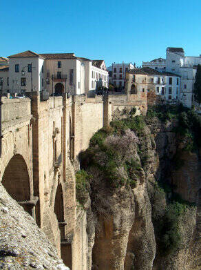 Om 8 uur zijn we bij Jac. Marianne moet naar Malaga gebracht worden, om daar het vliegtuig naar Bilbao te halen. Na koffie te hebben gedronken op het vliegveld gaan we de auto ruilen voor een 6 persoons, zodat Jac de rest van de week ook mee kan. Als we richting Ronda rijden blijkt de volkswagen, die we hebben gekregen erg te trillen bij 100 km of harder. We gaan weer terug en krijgen een Ford. Gelukkig rijdt deze wel goed. We vervolgen onze weg en komen over een bochtige weg in Ronda. Ronda ligt in een bergachtig gebied in centraal Andalusië, zo'n vijftig kilometer landinwaarts van de Costa del Sol op ongeveer 750 meter boven zeeniveau. De rivier Guadalevín splitst het stadje in tweeën en heeft een diepe kloof, bekend als El Tajo, uitgesneden waaroverheen drie beroemde bruggen van Ronda zijn gebouwd; de Puente Romano ("Romeinse brug", ook bekend als Puente San Miguel), de Puente Viejo ("oude brug", ook bekend als Puente Arabe, of "Arabische brug") en de beroemde Puente Nuevo ("Nieuwe brug"). Vanaf boven heb je een heel mooi uitzicht op de diepe kloof, waar de rivier doorstroomt. Vanaf de achttiende eeuw begon het stierenvechten steeds belangrijker te worden in de omgeving en in 1784 werd in Ronda een Plaza de Toros gebouwd, de oudst nog bestaande stierenvechtenarena van Spanje. De beroemde torero Pedro Romero werd in Ronda geboren en won daar veel gevechten. Vervolgens rijden we weer door de bergen naar de kust terug. Onderweg zien we een heleboel ooievaars op nesten op elektriciteitspalen zitten. Het is een heerlijke zonnige dag en om half 8 zijn we weer terug in Tarifa, waar ons eten al voor ons klaar staat.