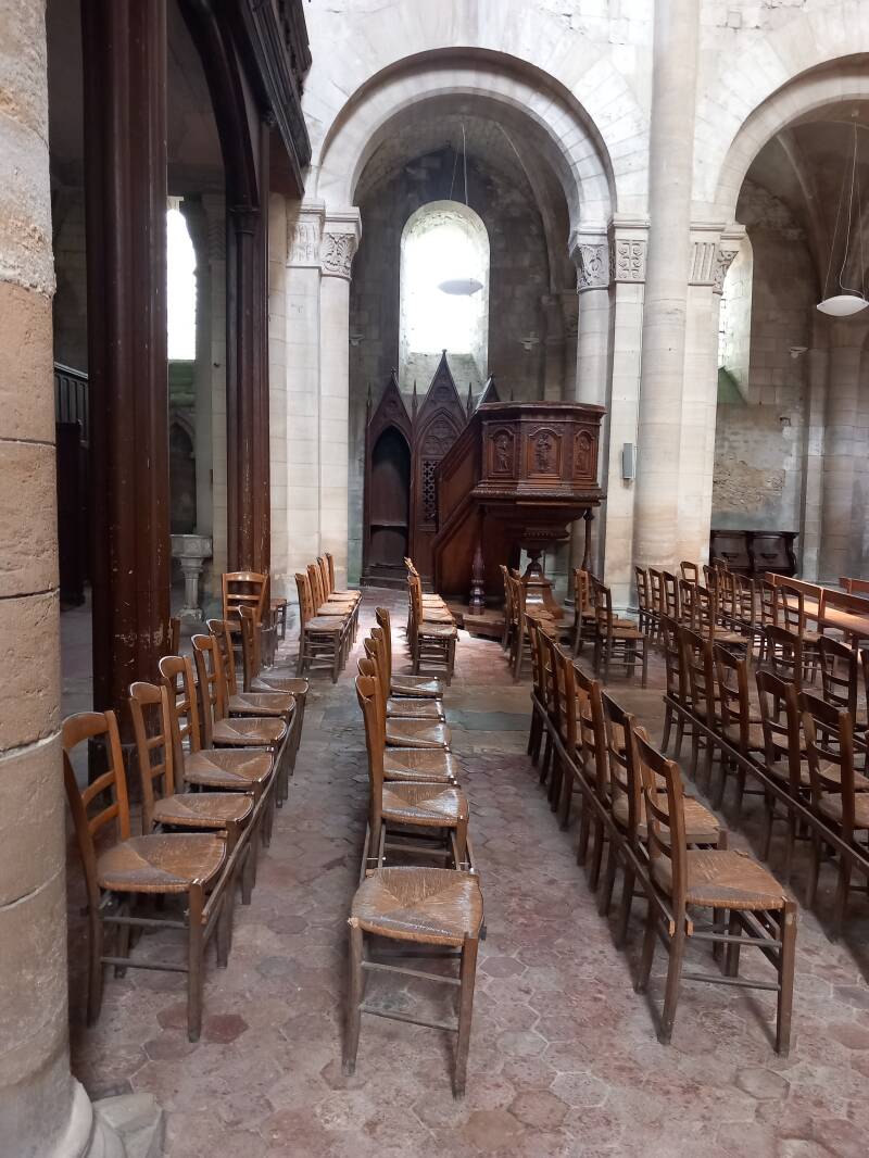 Vandaag is het weer triest weer. We rijden verder naar Bourgueil, waar we moeite hebben om de camperplaats te vinden. Zenec leidt ons midden door de smalle straatjes van het dorp, waar we amper langs kunnen. Gelukkig komen we er met Google maps wel gekomen. De plek is niet zo groot en er zijn geen voorzieningen. We lunchen en wachten tot het droog is. Daarna lopen we nog even door het dorp langs de abdij, wat net naast de camperplaats ligt. Dan komen we bij een mooi parkje, waar ook wat dieren worden gehouden. We doen nog even een paar inkopen bij de Action en zien dat de Lidl, die vlak om de hoek zit morgenvroeg ook open is.