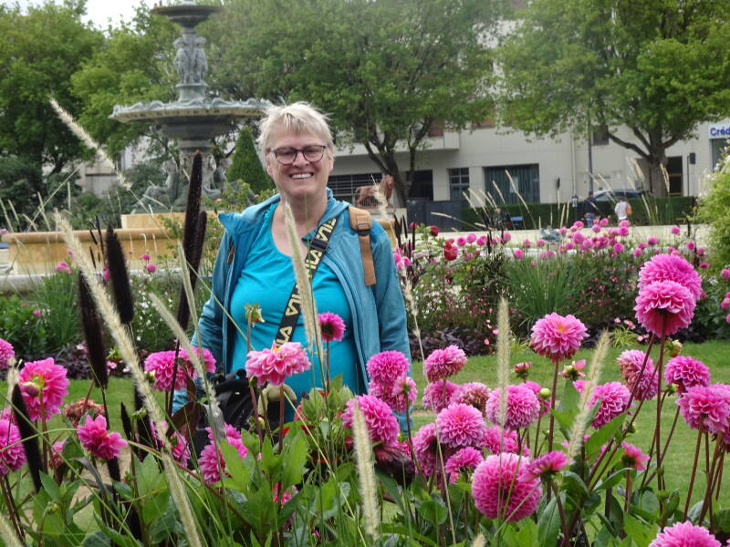 Vervolgens lopen we verder en zien het gemeentehuis met mooie fonteinen ervoor. Daarna weer verder langs een kerk naar de Loire.