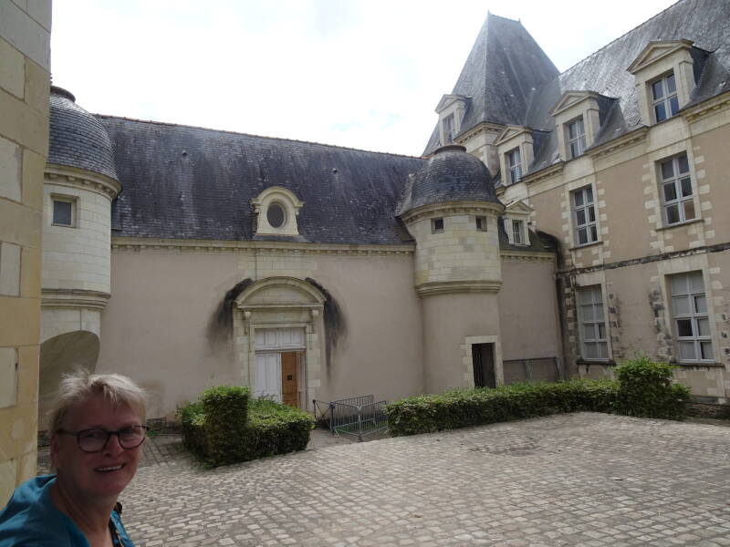 Daarna lopen we vanaf de Loire de smalle straatjes in en komen bij een aantal kerken en daarna in een wijk met Middeleeuwse huizen, waar veel eettentjes zitten en waar een gezellige drukte heerst. Daarna fietsen we weer terug naar de camperplaats. In de camper is het behoorlijk warm en we zetten alle dakluik open, zodat het een beetje door kan waaien. In de avond wordt het lekker en zitten we nog heerlijk buiten.