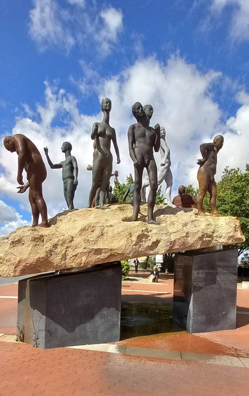 Vandaag gaan we weer verder. We vertrekken rond half 12 en nemen afscheid van de kinderen. We rijden tussen het Ringkøbing fjort en de zee over de smalle kuststrook. In het fjort zijn ze aan het surfen en er staan heel veel vakantiehuizen in deze strook. Daarna gaan we langs Ringkøbing naar Holstebro. Onderweg waait het weer behoorlijk, maar het is aardig rustig op de weg. In Holstebro nemen we de camperplaats vlakbij het centrum. Dan lunchen we. We maken een wandeling door de stad en verbazen ons over de hoeveelheid kunst, die hier te vinden is.