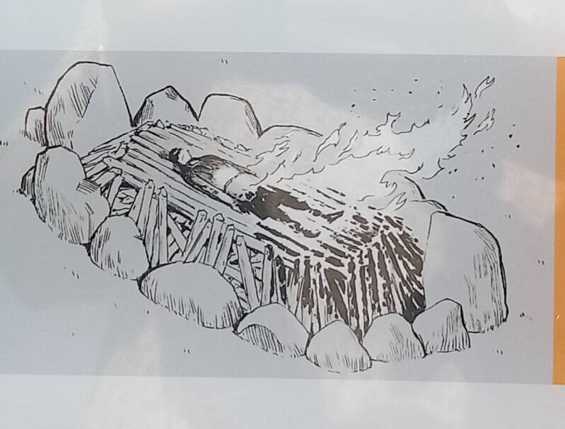 Bij elk van de ongeveer 700 crematiegraven werd de overledene ter plekke verbrand in verband met de begrafenis, en werd elk crematiegraf omgeven door stenen. Deze stenen zien we hier liggen.