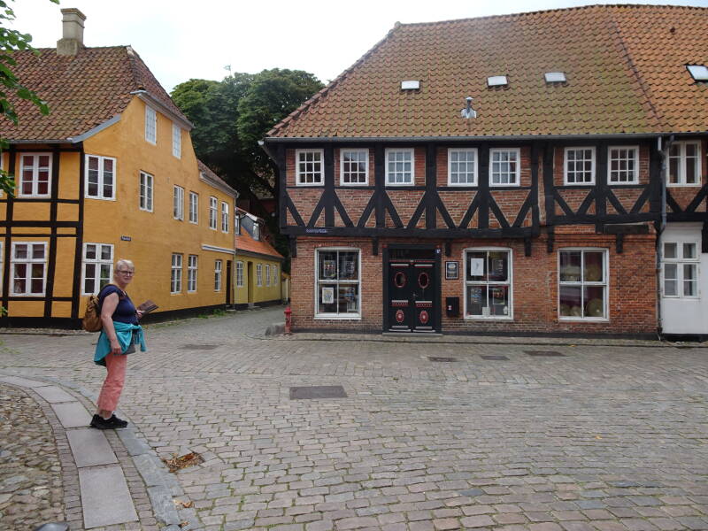 In de Middeleeuwen was Ribe een van de belangrijkste handelsplaatsen in Denemarken. De Deense kooplieden zakten met hun schepen ook af naar de Lage Landen. Dat je van al die handel behoorlijk rijk kon worden, zie je aan de statige panden die je hier en daar tegenkomt in de stad. Sommige zijn qua bouw eigenlijk meer geschikt als landhuis, met een flink stuk land eromheen. Toch staan ze in het volgebouwde Ribe, puur omdat mensen die veel geld hadden, dat ook graag wilden laten zien. De kleinere huizen van Ribe mogen er ook zijn. Veel ervan zijn gebouwd met vakwerk: een houten ‘skelet’ dat zorgt voor stevigheid, waarna de vakken werden dichtgemetseld. Omdat de stenen geen functie hadden voor de stevigheid van het huis, kon de metselaar een beetje opscheppen met zijn vakmanschap door allerlei patronen te maken. Het dragende hout mocht natuurlijk niet nat worden, want dan zou het gaan rotten. Daarom hangt de eerste verdieping er vaak wat overheen, als een afdak. Ook in het hout van de vakwerkhuizen zijn bepaalde patronen gebruikt, waaraan je periodes kunt herkennen. In de tijd van de heksenvervolging werden er bijvoorbeeld kruisjes in aangebracht, om het kwaad af te weren. De voordeuren van Ribe zijn een verhaal apart. Inwoners mogen er niets aan veranderen. Als de deur er zo slecht aan toe is dat hij vervangen moet worden, moet er een nieuwe deur komen die er precies hetzelfde uitziet als de oude. Als de oude deur schots en scheef is door het verzakken van de grond, moet de nieuwe deur dus ook schots en scheef zijn. (bron: stralenddenemarken.nl)