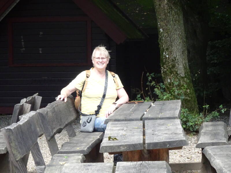 Vandaag weer verder. Bij Vejle zijn behoorlijke heuvels. We rijden door langs Kolbing naar Jens. Daar staan we weer op een rustig plekje. We drinken koffie en lopen dan naar het meertje. Daar komen we langs een mooi strandje, langs een speeltuin, langs sporttoestellen en uiteindelijk bij het openluchttheater en een Vikingfeestzaal.