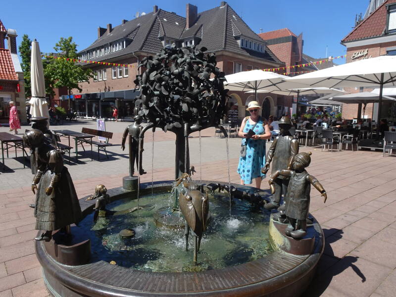 Vandaag wordt het een warme dag, dus we staan niet te laat op, zodat we op tijd rijden. Omdat we iets zuidelijker t.o.v. Hamburg staan, rijden we onder Hamburg door. Hier is het veel minder druk. Ook nu willen we iets van 220 km verder. We drinken koffie onderweg en zijn rond half 1 al in Vechta, waar we de camperplaats midden in het stadje nemen. De Lidl zit om de hoek, maar in vandaag, op zondag dicht. Daar kunnen we morgenvroeg wel verse broodjes halen. Nu lopen we door het centrum, waar het erg druk is op de terrasjes. Het is best een behoorlijk centrum. Het is erg zonnig en warm en we besluiten vanavond uit eten te gaan. Ik fiets nog een rondje door het centrum en tegen 6 uur lopen we naar de Griek, waar we heerlijk eten op het terras, waar nog net een tafeltje vrij was. Als we terug bij de camper komen zijn we voldaan.