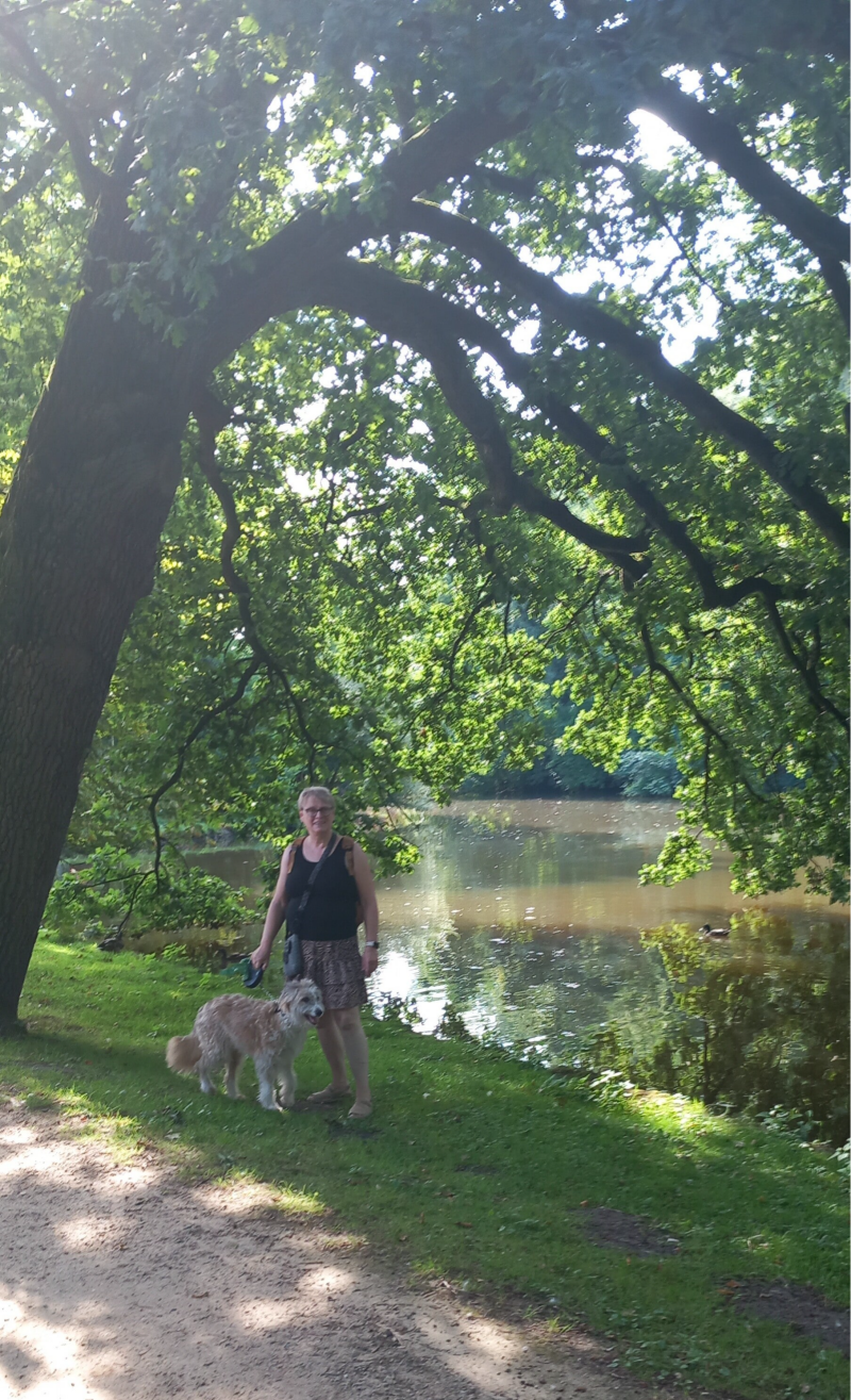 Vandaag wordt het weer warmer dan gisteren. We gaan ongeveer 150 km verder naar Ahaus. Onderweg schieten we aardig op, ondanks de vele vrachtwagens en de wegwerkzaamheden. Onderweg drinken we koffie en we zijn rond lunchtijd in Ahaus. We lopen na 2 uur het stadje in. Het is erg warm en we mijden de zon zoveel mogelijk. Ik koop nog wat kleding. Nadien eten we een ijsje en zitten in de schaduw. Raar is dat, we zijn deze vakantie met bloedheet weer vertrokken en komen ook weer met dezelfde hitte terug. Tussendoor was het eigenlijk aldoor lekker rond de 20 en 22 graden. Een paar keer een regenbui/ dag en dat was het. Een mooie vakantie, waarin we veel hebben gezien en gedaan.