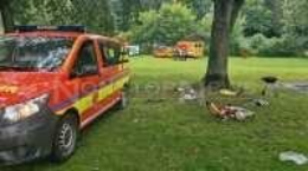 Om half 4 begint de verwachtte stortbui. Niet lang daarna horen we een behoorlijke knal, blikseminslag vlakbij. Even later komen er veel brandweerauto's, politie- en ziekenauto's, die op zoek zijn naar de plaats, waar ze moeten zijn. 's Avonds zien we op tv dat er in het park blikseminslag was, waarbij een gezin slachtoffer was. Daar waren ze dus naar op zoek. Achteraf horen we dat het ging om een moeder met kinderen, die aan het picknicken waren en nog een aantal mensen, die schuil zochten onder een boom. Er zijn 10 gewonden, waarvan 2 kinderen en 2 zwaar. Ook de traumahelikopter was ter plaatse. Een waar drama dus in het park waar wij naast stonden.