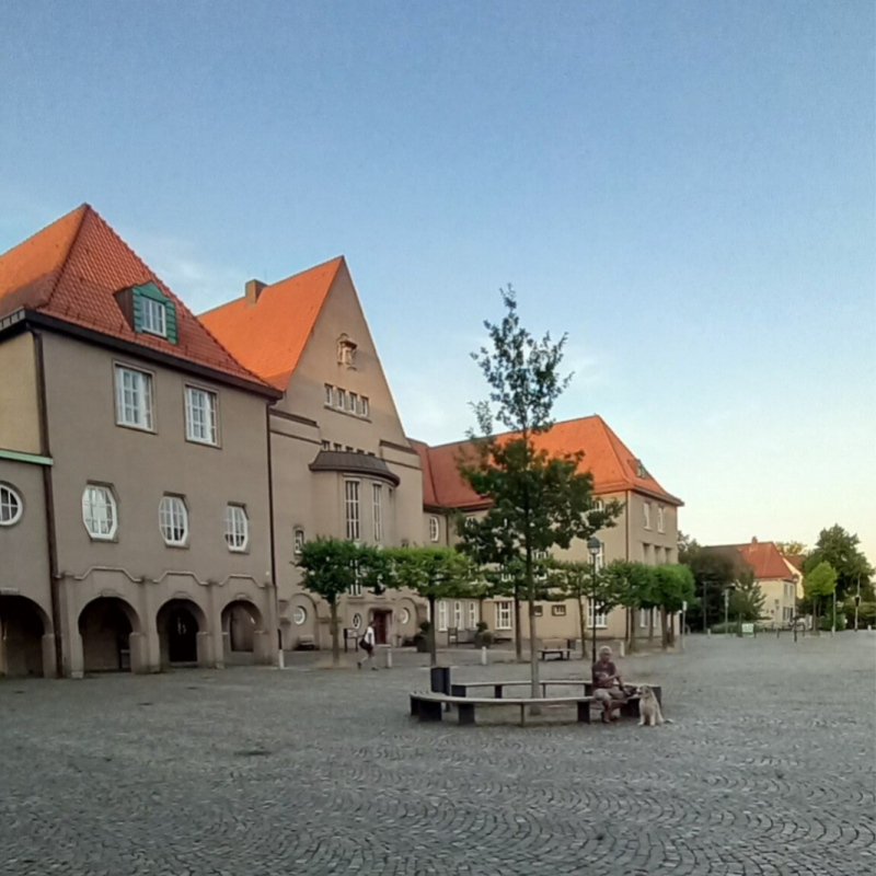 In de avonduren lopen een nog even het centrum in, dat veel groter is dan we gedacht hadden. Het raadhuis aan de watertoren vast en daarachter is het marktplein. Overal is het gezellig druk op de terrasjes.