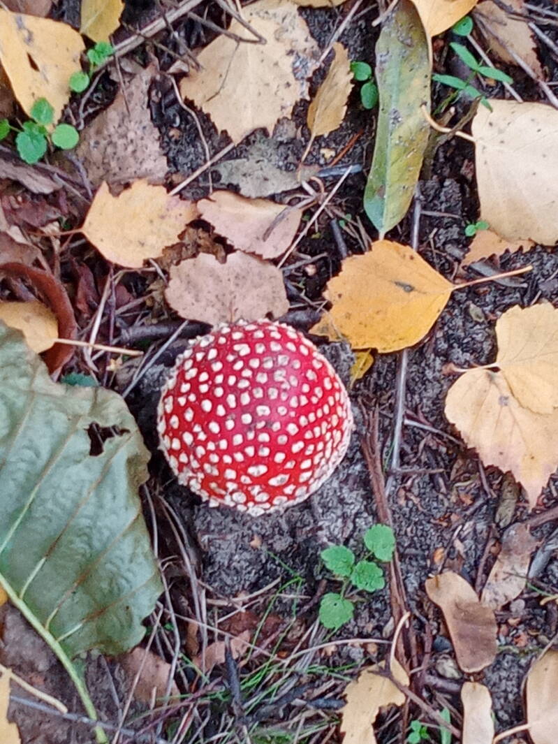 Op vrijdag al begonnen met de tochtstrips verder te plaatsen. Op zaterdag eerst even boodschappen doen over de grens in Emlichheim. Daarna weer verder met de afwerking. Tochtstrips en hang en sluitwerk vernieuwen en plaatsen. Alle slaapkamerramen kunnen nu afgesloten op een kierstand vastgezet worden. Verder de gewassen vitrage weer netjes opgehangen en nieuwe kussentjes meegenomen. De werkweekenden zitten er weer op. Het wordt al echt herfst, de blaadjes verkleuren al mooi en ook de paddenstoelen komen tevoorschijn. Soms staan ze verscholen tussen de blaadjes, maar ook staan er al mooie rood met witte stippen.